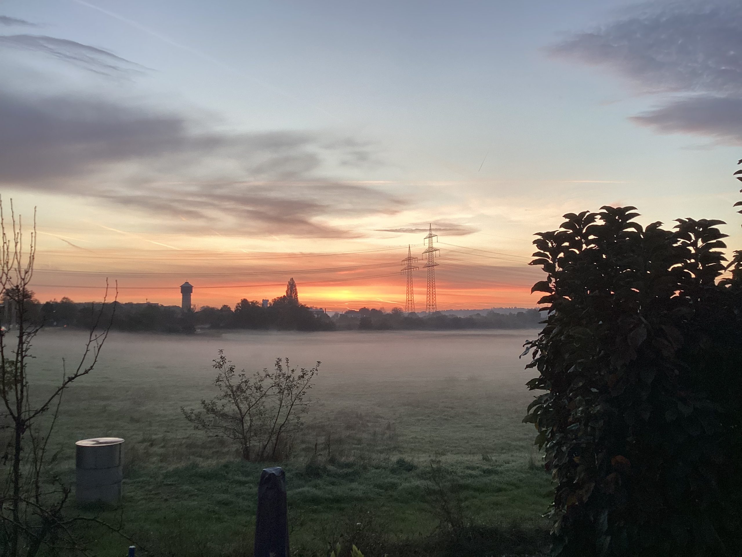 Weiß sprüht der Nebel gegen die Hauswand. Alle Fenster sind verhüllt. Feuchte Luft dringt durch die Räume. Die Hofwand wird bald fertig sein.