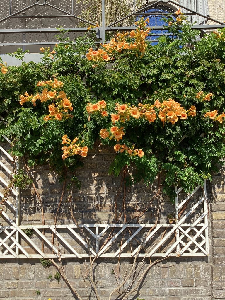 sumsel, brumsel, blütenkelch, mal in blauweiß mal in gelb. sumsel, brumsel, eins zwei drei, hummel kommt ganz fix vorbei. So miniklein der neue französische Balkon auch ist, er ist ein wahrer Insektentummelplatz.