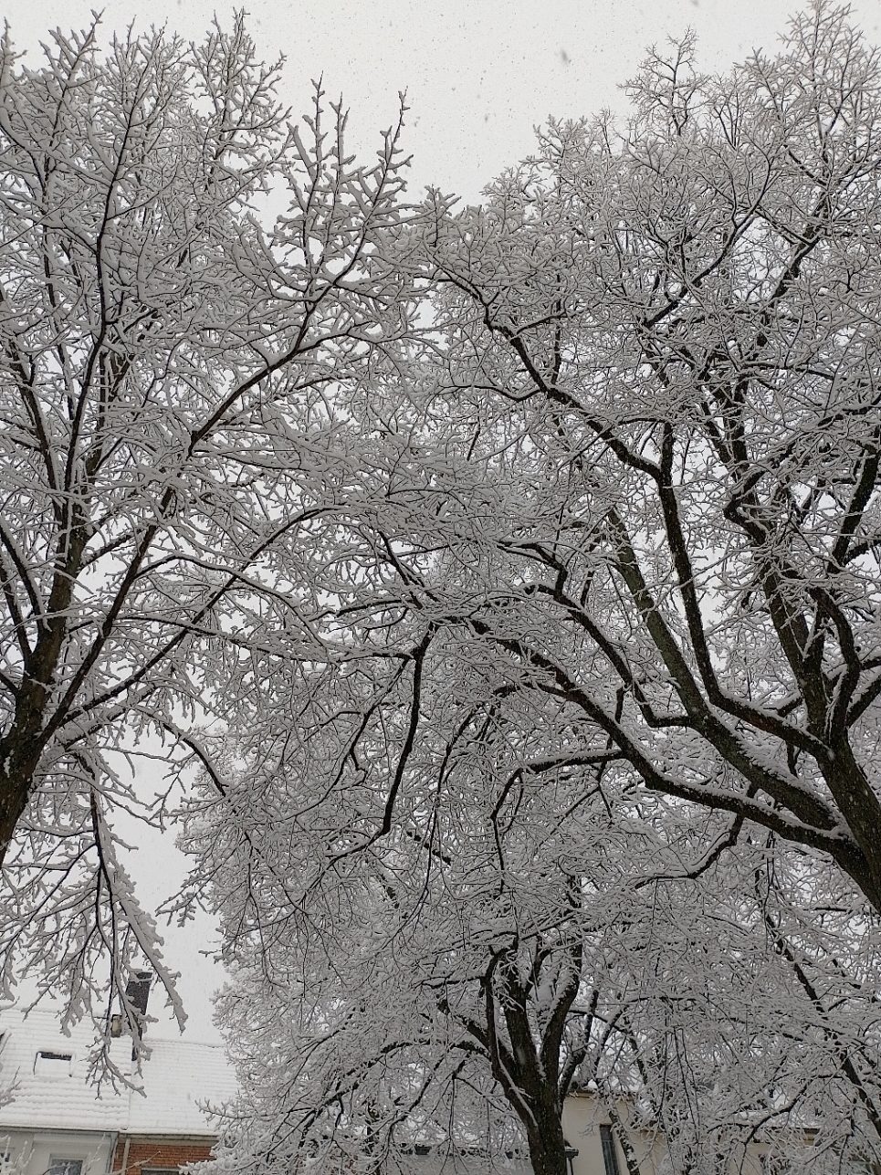 Tag sechs sah er in den Himmel und bemerkte, wie die Bäume um ihn her ein Dach aus ihren Baumkronen bildeten, das seinen Weg vor dem eisigen Wind aus Norden schützte. Wie er ihre Äste ein wenig länger gegen das bald dämmrige Winterlicht betrachtete, bemerkte er, dass sie mit ihren Zweigen das Abbild einer kleinen Stadt formten, in der er früher schon einmal gewesen war. Jetzt kannte er sein Ziel.